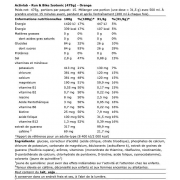 Ingrédients saveur orange : Glucose, correcteur d’acidité (acide citrique, citrate trisodique), Phosphates de calcium, chlorure de potassium, carbonate de magnésium, édulcorants (acésulfame k), extrait de graines de guarana (paullinia cupana), arômes, vitamines (mononitrate de thiamine, riboflavine, nicotinamide, D-pantothénate de calcium, chlorhydrate de pyridoxine, D-biotine, acide folique, cyanocobalamine), colorants (jaune de quinoléine).