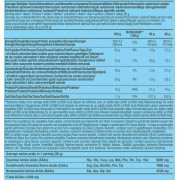 Ingrédients - saveur chocolat peanut butter : protéines de lactosérum instantanées 88% {concentré de protéines de lactosérum [émulsifiant : lécithines], isolat de protéines de lactosérum [émulsifiant : lécithines (soja)]}, L-Glutamine 2,9%, cacao maigre en poudre, arômes, colorants (caramel à l'ammoniaque), épaississant (gel de cellulose), L-Arginine, sel, L-Leucine 0,2%, édulcorant (sucralose), L-Isoleucine 0,1%, L-Valine 0,1%, poudre de bromélaïne 0,04%.
