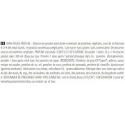 Ingrédients Chocolat : protéines de pois C9 Pisane®, arômes, cacao maigre en poudre, protéine de riz, sel, protéine de coco, protéine de grenade, protéine de citrouille, épaississant (gomme xanthane), édulcorants (sucralose, acésulfame K), cyanocobalamine.