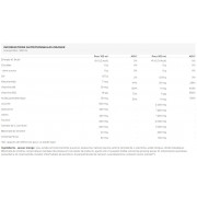Ingrédients - saveur orange : eau, acides aminés branchés (Leucine, Isoleucine, Valine), taurine, arôme, tartrate de L-Carnitine, acide citrique, citrate trisodique, Bitartrate de choline, conservateurs (sorbate de potassium, benzoate de sodium), agent anti-moussant (E436), extrait de ginseng panax 5:1, édulcorants (sucralose, acésulfame-K), niacinamide, inositol, chlorhydrate de pyridxine, D-pantothénate de calcium, cyanobolamine, colorant (jaune orangé**).
